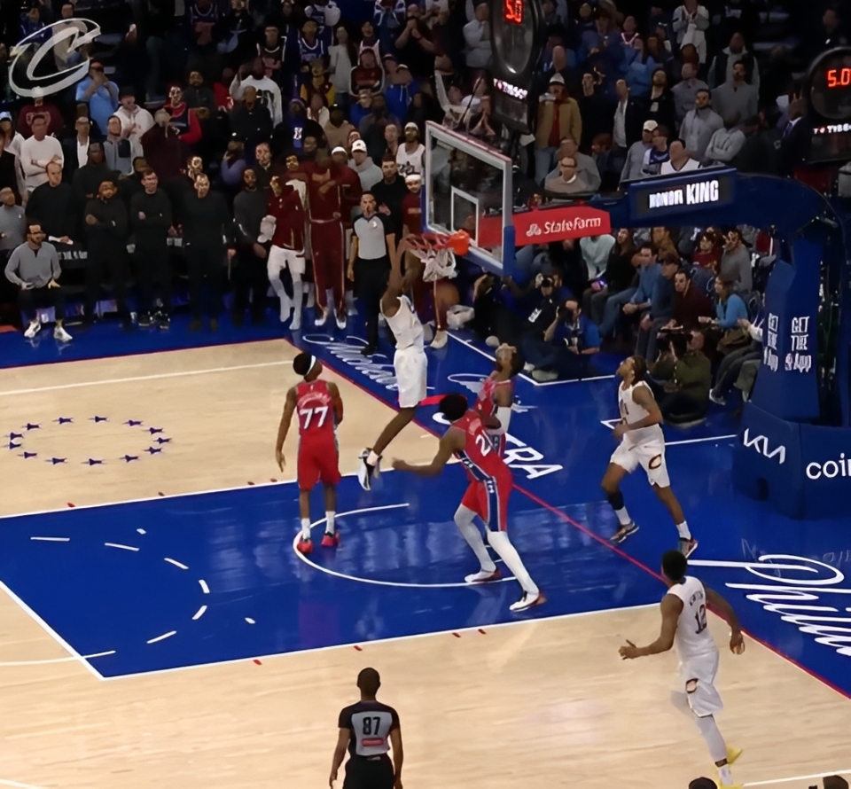 比赛最后时刻,双方战成115-115,骑士进攻回合,杰伦·泰森左侧底角接球往里冲,随后分球埃文·莫布里,后者起跳扣篮得手完成准绝杀。76人没有暂停了,马克西超远三分出手不中,比赛结束。