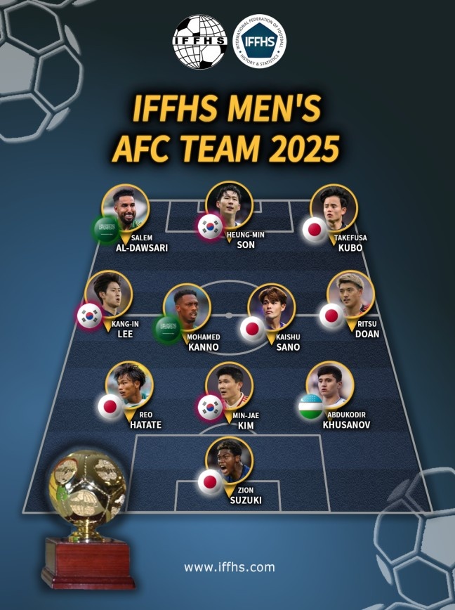 mksoprts-IFFHS亚足联年度最佳阵:日本5人韩国3人,孙兴慜、胡桑诺夫在列